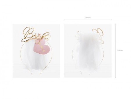 Bandeau en métal avec l'inscription ''Bride''de couleur or et avec un voile blanc, longueur environ 50 cm.