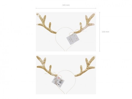 Bandeau métallique Renne avec cornes en tissu doré, taille environ 34,5 x 22 cm.