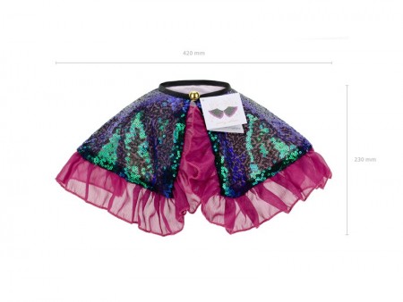 Col à  sequins bicolores verts et bleus brillants avec volant violet. Pour les enfants âgés de 3 à  7 ans. \n