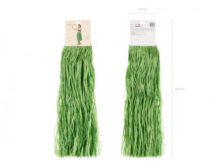 Jupe hawaïenne en raphia verte, taille unique pour adulte. Jupe avec ceinture élastique. Dimensions : longueur 77 cm, largeur de taille 31,5 cm