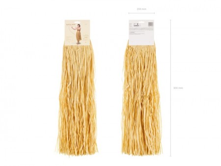Jupe hawaïenne en raphia beige, taille unique pour adulte. Jupe avec ceinture élastique. Dimensions : longueur 77 cm, largeur de taille 31,5 cm