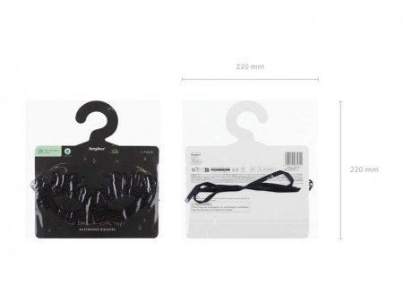 Masque de carnaval en dentelle noir, environ 8 cm de hauteur et 21 cm de largeur. Le masque est attaché à  l'arrière avec des Rubans tissu noirs.
