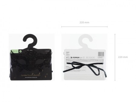 Masque de carnaval en dentelle noir, environ 11 cm de hauteur et 20 cm de largeur. Le masque est attaché à  l'arrière avec des Rubans tissu noirs.