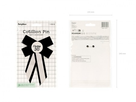 Rosette pour le 30e anniversaire en couleur crème-noir, dimensions environ 11 x 17 cm. La rosette est équipée d'une épingle de sûreté.