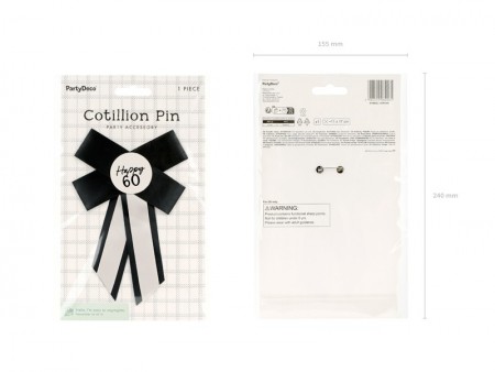 Rosette pour le 60e anniversaire en couleur crème-noir, dimensions environ 11 x 17 cm. La rosette est équipée d'une épingle de sûreté.