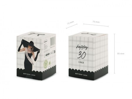 Echarpe en papier Happy 30 de couleur crème avec imprimé noir, largeur env. 9,5 cm, longueur env. 76 cm. Le set comprend un ruban de velours noir pour attacher l'écharpe.
