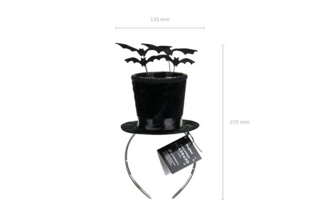Bandeau d'Halloween avec un Cylindre Noir et des Chauves-Souris. Dimensions d'environ 19 x 26 cm.