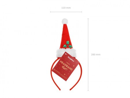 Bandeau chapeau de Noël en rouge et blanc, dimensions env. 11 x 26,5 cm.