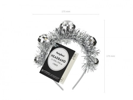 Serre-tête Boule Disco en couleur argente, dimensions env. 17.5 x 17.5 cm.