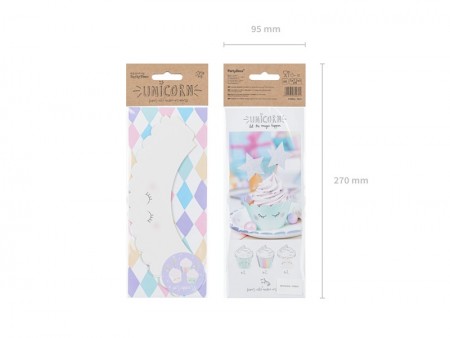 Moules à  muffins Licorne, mélange de motifs, dimensions après pliage environ 5 x 7,5 x 5 cm.