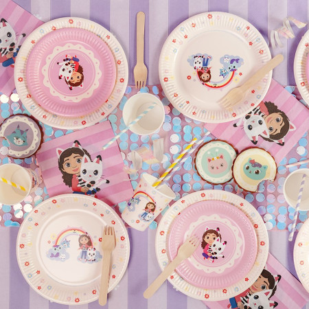 Ces assiettes jetables en carton allient robustesse et esthétique, idéales pour simplifier l’organisation d’une fête tout en créant un univers magique qui plaira à tous les enfants. Elles se marient parfaitement aux gobelets assortis et aux serviettes roses Gabby et Pandy Pat, pour un rendu cohérent et festif qui émerveillera les petits convives. Utilisées lors d’un anniversaire d’enfant, d’une fête à thème ou d’un goûter d’école, elles transforment un repas ordinaire en un moment mémorable et coloré.