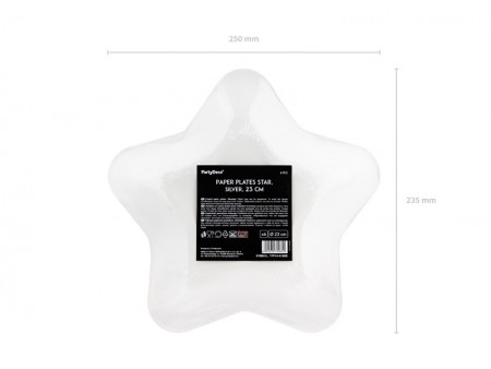 Assiettes étoiles en papier métallisé de couleur argente, diamètre d'environ 23 cm.