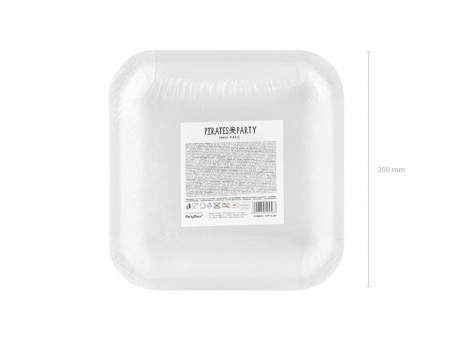 Assiettes en papier Pirates en rouge avec impression blanche, dimensions environ 20 x 20 cm.