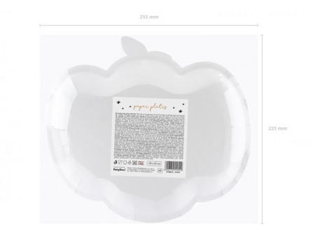 Assiettes en papier Citrouille en rose avec impression noire, dimensions environ 25 x 22 cm.
