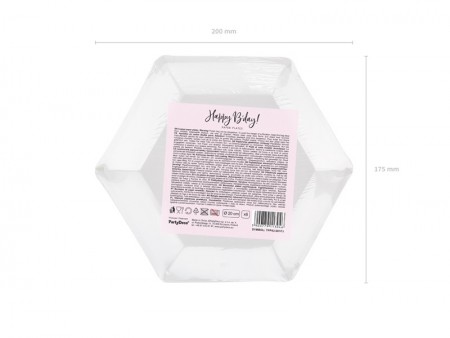 6 Assiettes Happy B'day !- rose poudré brillant - 20cm