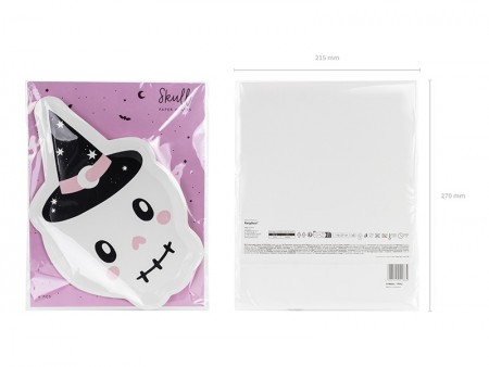 Assiettes Crâne en papier, mélange de couleurs, diametre d'environ 18 x 27 cm.