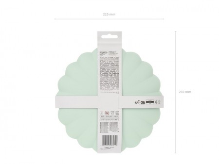 Assiettes en plastique Volant en couleur sauge, dimensions approx. 22 x 22 cm. Produit réutilisable.