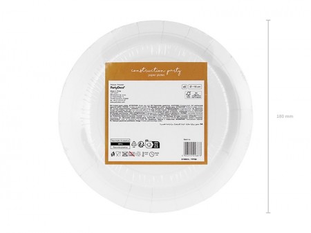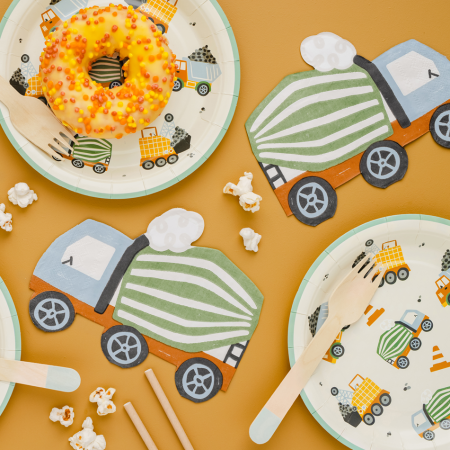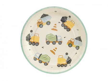 Assiettes Véhicules de chantier en papier, mélange de couleurs, diametre d'environ 18 x 18 cm.