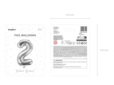 Ballon en Mylar métallisé, Chiffre ''2'' en argent, taille avant gonflage environ 40 cm (40cm), taille après gonflage environ 35 cm (14''). A gonfler avec de l'air.