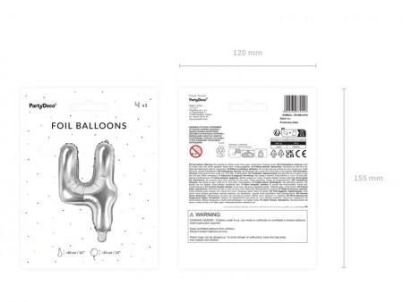 Ballon en Mylar métallisé, Chiffre ''4'' en argent, taille avant gonflage environ 40 cm (40cm), taille après gonflage environ 35 cm (14''). A gonfler avec de l'air.