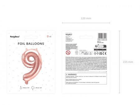 Ballon en Mylar métallisé, Chiffre ''9'' en or rose, taille avant gonflage environ 40 cm (40cm), taille après gonflage environ 35 cm (14''). A gonfler avec de l'air.