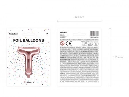 Ballon Mylar métallisé Lettre ''T'' de couleur or rose, hauteur avant gonflage environ 40 cm (40cm), hauteur après gonflage environ 35 cm (14''). A gonfler avec de l'air.