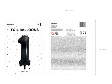 Ballon en aluminium pastel Chiffre 1 en noir, taille avant gonflage env. 100 cm (39''), taille après gonflage env. 86 cm (34''). Peut être gonflé à  l'air et à  l'hélium. Le ballon est auto-scellant. Dispose de crochets pour faciliter le montage décoratif.