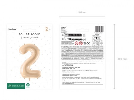 Ballon en aluminium pastel Chiffre 2 en beige, taille avant gonflage env. 86 cm (34''), taille après gonflage env. 72 cm (28''). Peut être gonflé à  l'air et à  l'hélium. L'ensemble comprend une paille. Le ballon est auto-scellant. Dispose de crochets pour faciliter le montage décoratif.