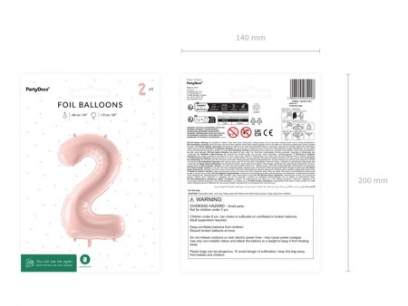 Ballon en aluminium pastel Chiffre 2 en rose clair, taille avant gonflage env. 86 cm (34''), taille après gonflage env. 72 cm (28''). Peut être gonflé à  l'air et à  l'hélium. L'ensemble comprend une paille. Le ballon est auto-scellant. Dispose de crochets pour faciliter le montage décoratif.