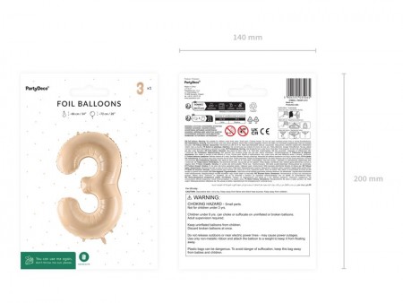 Ballon en aluminium pastel Chiffre 3 en beige, taille avant gonflage env. 86 cm (34''), taille après gonflage env. 72 cm (28''). Peut être gonflé à  l'air et à  l'hélium. L'ensemble comprend une paille. Le ballon est auto-scellant. Dispose de crochets pour faciliter le montage décoratif.
