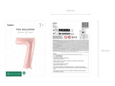 Ballon en aluminium pastel Chiffre 7 en rose clair, taille avant gonflage env. 86 cm (34''), taille après gonflage env. 72 cm (28''). Peut être gonflé à  l'air et à  l'hélium. L'ensemble comprend une paille. Le ballon est auto-scellant. Dispose de crochets pour faciliter le montage décoratif.