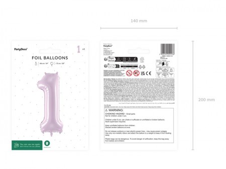 Ballon en aluminium pastel Chiffre 1 en violet, taille avant gonflage env. 86 cm (34''), taille après gonflage env. 72 cm (28''). Peut être gonflé à  l'air et à  l'hélium. L'ensemble comprend une paille. Le ballon est auto-scellant. Dispose de crochets pour faciliter le montage décoratif.