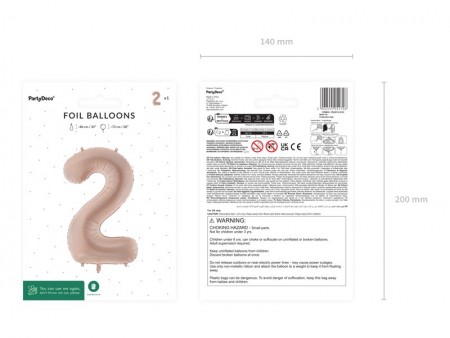 Ballon en aluminium mat Chiffre 2 en beige foncé, taille avant gonflage env. 86 cm (34''), taille après gonflage env. 72 cm (28''). Peut être gonflé à  l'air et à  l'hélium. L'ensemble comprend une paille. Le ballon est auto-scellant. Dispose de crochets pour faciliter le montage décoratif.