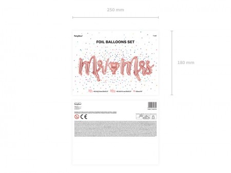 Ballon Mylar métallisé Mr Mrs de couleur or rose, le set contient un ballon en papier Mr - dimensions environ 62,5 x 31,5 cm (25 x 12,5''), un ballon en papier Mrs - dimensions environ 69 x 32,5 cm (27 x 13'') et un ballon en papier coeur - diamètre environ 25 cm (10'').