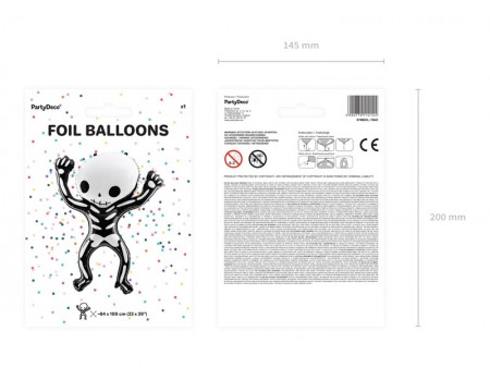 Ballon en Mylar Squelette en noir avec impression blanche, dimensions environ 84 x 100 cm (33 x 39'').