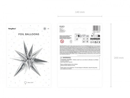 Ballon en Mylar étoile 3Dbrillant, de couleur en argent, diam?tre d'environ 70 cm (27,5''). Livré avec une paille de gonflage.