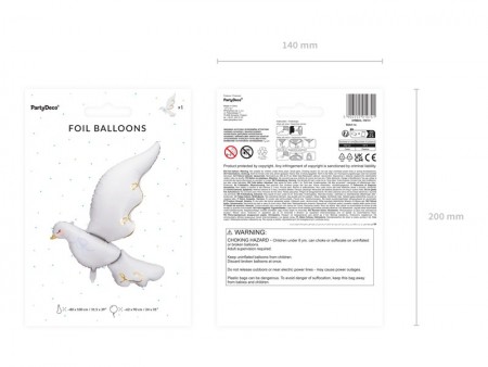 Ballon en aluminium Colombe, mélange de couleurs, dimensions avant gonflage: 80 x 100 cm (31.5 x 39'') environ, hauteur apr?s gonflage 62 x 90 cm (24 x 35'') environ, ? gonfler avec hélium ou air. Livré avec une paille de gonflage.