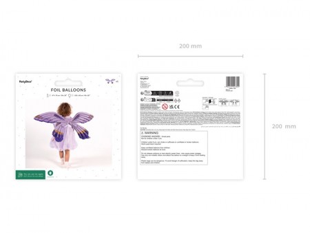 Ballon en foil en forme d'ailes de papillon, avec des cordes pour attacher au dos, couleur violet mat, dimensions env. 102 x 50 cm. à€ gonfler avec de l'air. Comprend une paille.