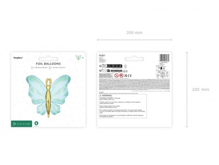Ballon en Mylar Papillon de couleur menthe. Dimensions avant gonflage environ 101 x 83 cm (39,8 x 32,7''), dimensions après gonflage environ 69 x 69 cm (27,2 x 27,2''). Gonfler avec de l'hélium et de l'air. Le set comprend une paille. Ballon auto-scellant. Dispose de 2 crochets pour faciliter le montage de la décoration.