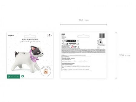 Ballon en Mylar Bulldog, mix de couleurs, finition mate. Dimensions avant gonflage : 85 x 71 cm (33,5 x 28''), dimensions après gonflage : 75 x 57 cm (29,5 x 22,4''). Gonfler avec de l'air. Le set comprend une paille et une carte de propriétaire de chien à  remplir. Ballon auto-scellant.