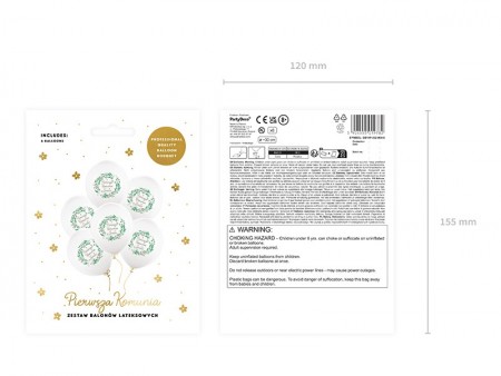 Ballons solides \Première Communion\, le lot contient 6 ballons en blanc pastel avec impression double face en couleur, diamètre 30 cm env.
