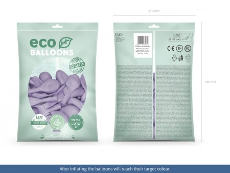 Ballons Eco Pastel de couleur lilas clair, d'environ 30 cm de diamètre.