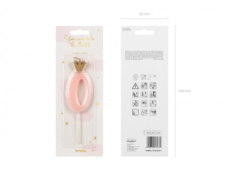 Bougie d'anniversaire Chiffre 0 de couleur rose clair, dimension environ 9,5 cm.