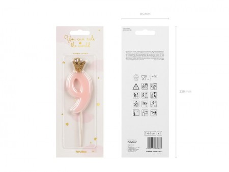 Bougie d'anniversaire Chiffre 9 de couleur rose clair, dimension environ 9,5 cm.