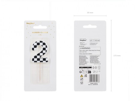 Bougie d'anniversaire numéro 2 avec motif drapeau ? damier, taille env. 5,5 cm, noir