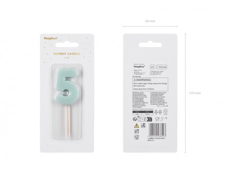 Bougie d'anniversaire Chiffre 5, bleu clair, taille env. 5.5 cm