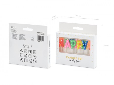 Bougies d'anniversaire Happy Birthday, mélange de couleurs avec des pois blancs, hauteur environ 2,5 cm