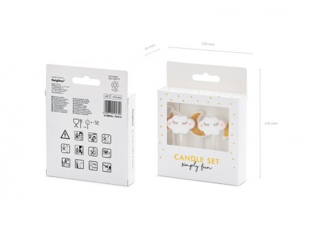 Vendues par lot de 5 pièces (2 nuages blancs, 2 étoiles dorées et 1 lune dorée), ces belles bougies feront sensation !