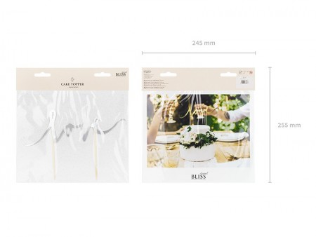 Topper de gâteau Love, Elegant Bliss, en argent, hauteur environ 17 cm.