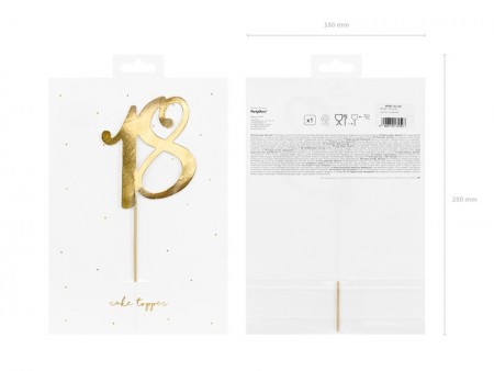 Décorations de gâteaux avec le chiffre 18 de couleur or, hauteur environ 20,5 cm.